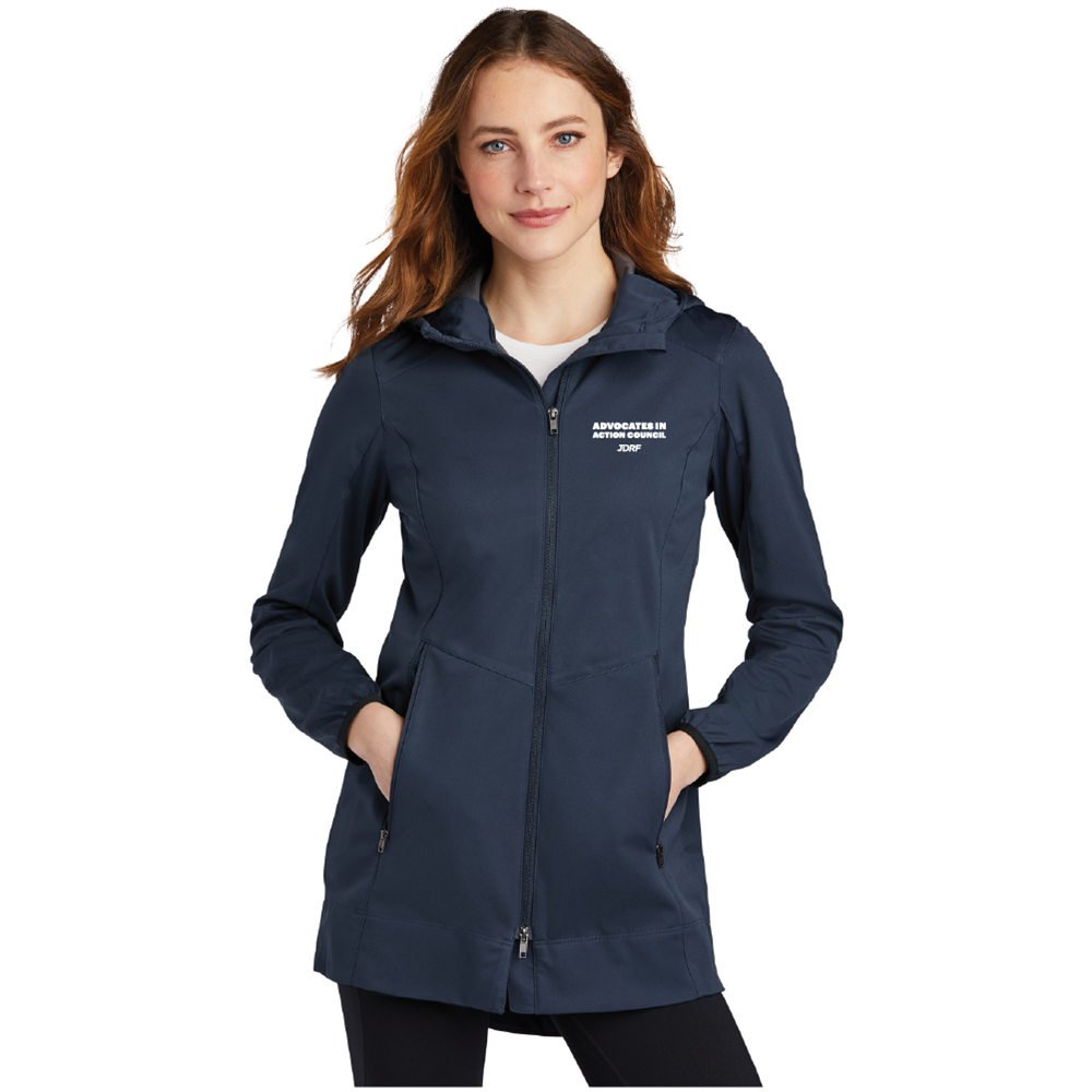 Enjoy active pursuits in this flexible, water-resistant, budget-friendly jacket that features a hood for true all-season performance.  Jacket is made of 100% polyester knit shell bonded to a water-resistant film insert and a 100% polyester mesh interior and features a three-panel hood with adjustable locking draw cord, reverse coil zipper, zippered chest pocket, front zippered pockets, elastic binding at cuffs, and an open hem with adjustable locking draw cord.  Available in sizes XS-4XL with the Advocates in Action Council logo embroidered on the left chest.