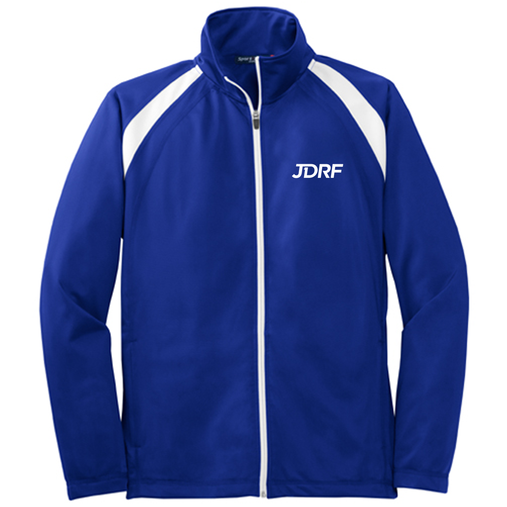 With an active team, you need track gear that can keep up. Made from comfortable 100% polyester tricot, with soft-brushed backing this jacket features a self-fabric collar, reverse zipper tape, side zippered pockets and an open hem with drawcord and toggle. Available in Royal/White in sizes S-4XL with the JDRF logo embroidered on the left chest.