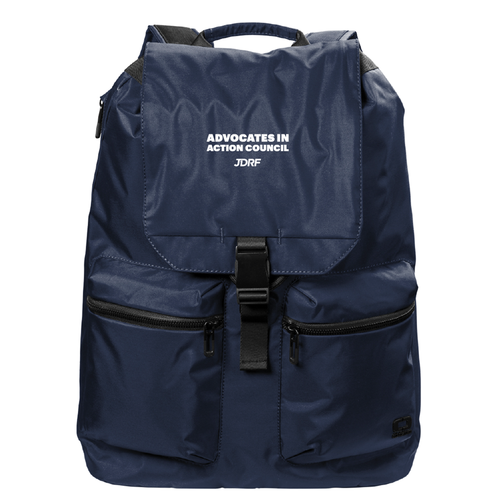 Evolution Pack available in River Blue Navy with the Advocates in Action Council logo embroidered on the top flap.