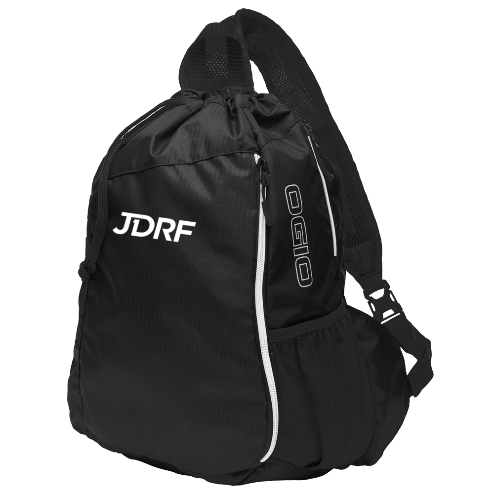 This sling pack is made of 420D poly double ripstop and has an adjustable, padded sling shoulder strap for comfortable carrying across your body. Pack also features a drawstring top, front zippered pocket, side beverage pocket, a side zippered valuables pocket, and a stretch mesh phone pocket on shoulder strap. Available in Colbalt Blue, Grey or Black with the JDRF logo embroidered on the front of the bag.